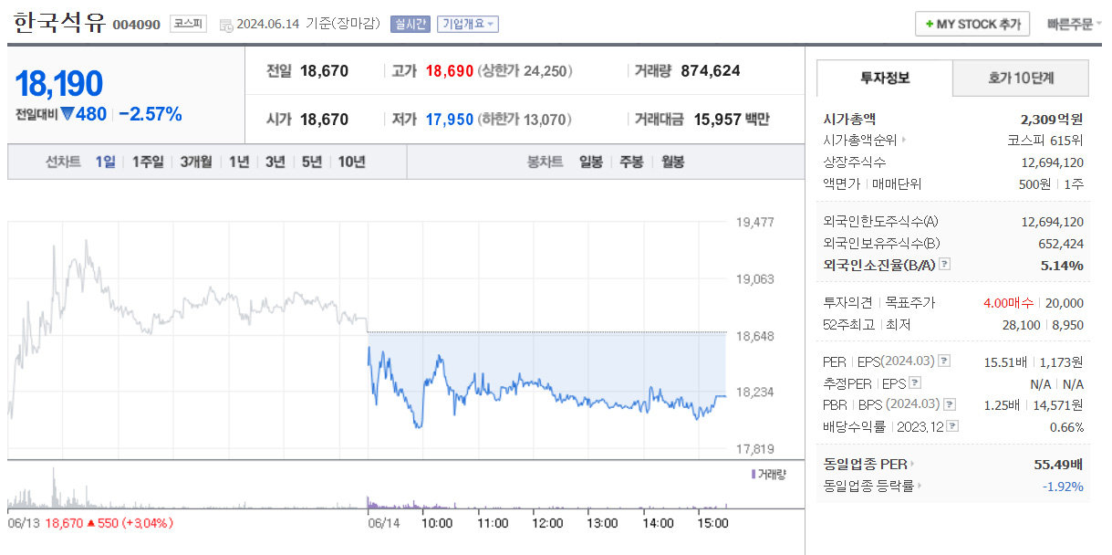 1) 한국석유 : 석유 관련주