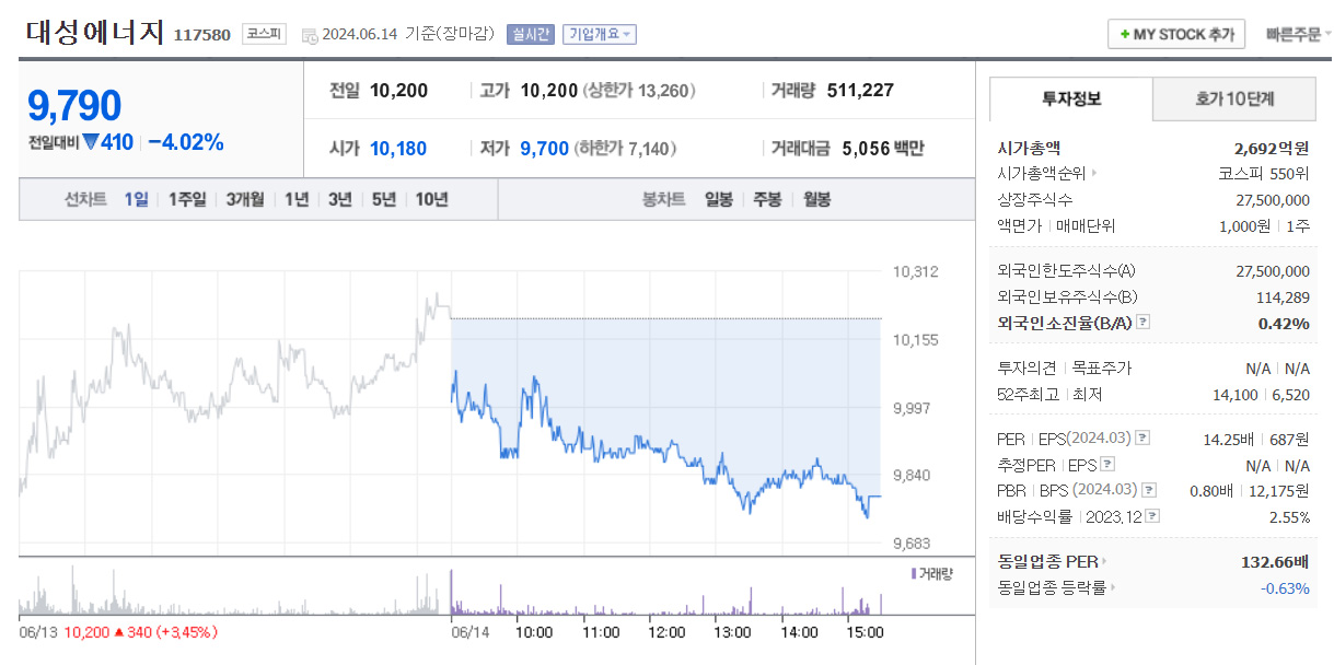6) 대성에너지 : 도시가스 관련주