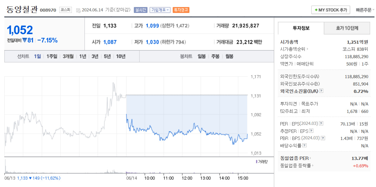 2) 동양철관 : 강관 관련주
