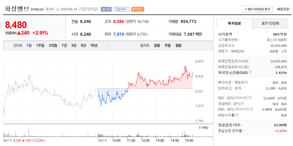 3) 화성밸브 : 피팅/밸브 관련주