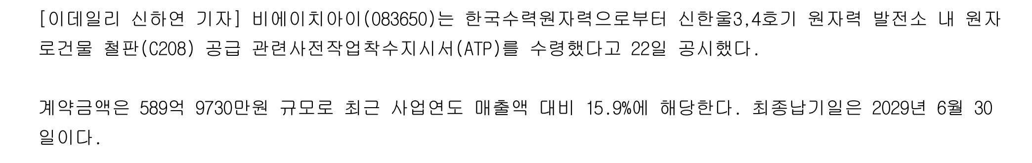 2. 종목 : 비에이치아이