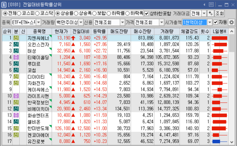 * 지엔씨에너지 : 29.99% (상한가) - 美 AI 인프라펀드 조성에 '비상발전기' 사업 부각